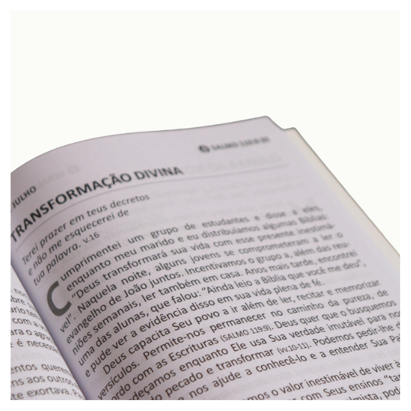 Mais do que um simples devocional, Pão Diário oferece 365 reflexões edificantes que encorajam o crescimento espiritual em todas as fases da vida. Cada leitura conduz o leitor a confiar mais plenamente no Senhor, renovar o seu amor por Deus e partilhar o evangelho com as pessoas ao seu redor. Com linguagem clara e aplicação prática, este devocional transforma a rotina familiar num momento de louvor, oração e aprendizagem.